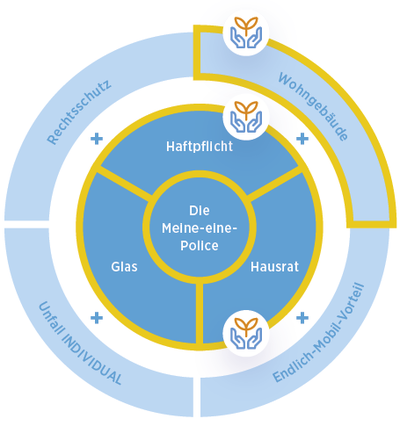 - Nachhaltige Leistungen für Hausrat-, Haftpflicht- und Wohngebäudeversicherung.